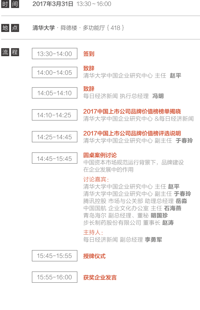 3月31日下午,清華大學(xué)中國(guó)企業(yè)研究中心聯(lián)合每日經(jīng)濟(jì)新聞,在清華大學(xué)發(fā)布“中國(guó)上市公司品牌價(jià)值榜”。經(jīng)過(guò)近1年的研究籌備,這份被稱(chēng)為“首次定義中國(guó)上市公司品牌價(jià)值”的榜單備受業(yè)界和資本市場(chǎng)期待。
