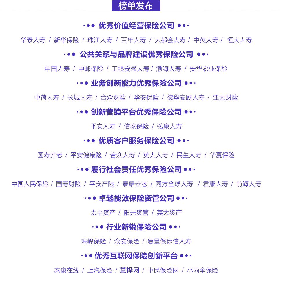 本次評(píng)選將秉持客觀真實(shí)、公正透明、范圍廣泛的原則,以“第5個(gè)保險(xiǎn)公眾宣傳日”活動(dòng)為契機(jī),再次將視角聚焦于新生態(tài)環(huán)境下中國保險(xiǎn)業(yè)最具經(jīng)營(yíng)智慧的風(fēng)云企業(yè),力求準(zhǔn)確把握保險(xiǎn)風(fēng)云脈絡(luò)。榜單以壽險(xiǎn)、產(chǎn)險(xiǎn)、資管為經(jīng)度,以經(jīng)營(yíng)理念、品牌建設(shè)、業(yè)務(wù)創(chuàng)新、客戶服務(wù)、償付能力、社會(huì)責(zé)任、資管能效為緯度來設(shè)置獎(jiǎng)項(xiàng)。