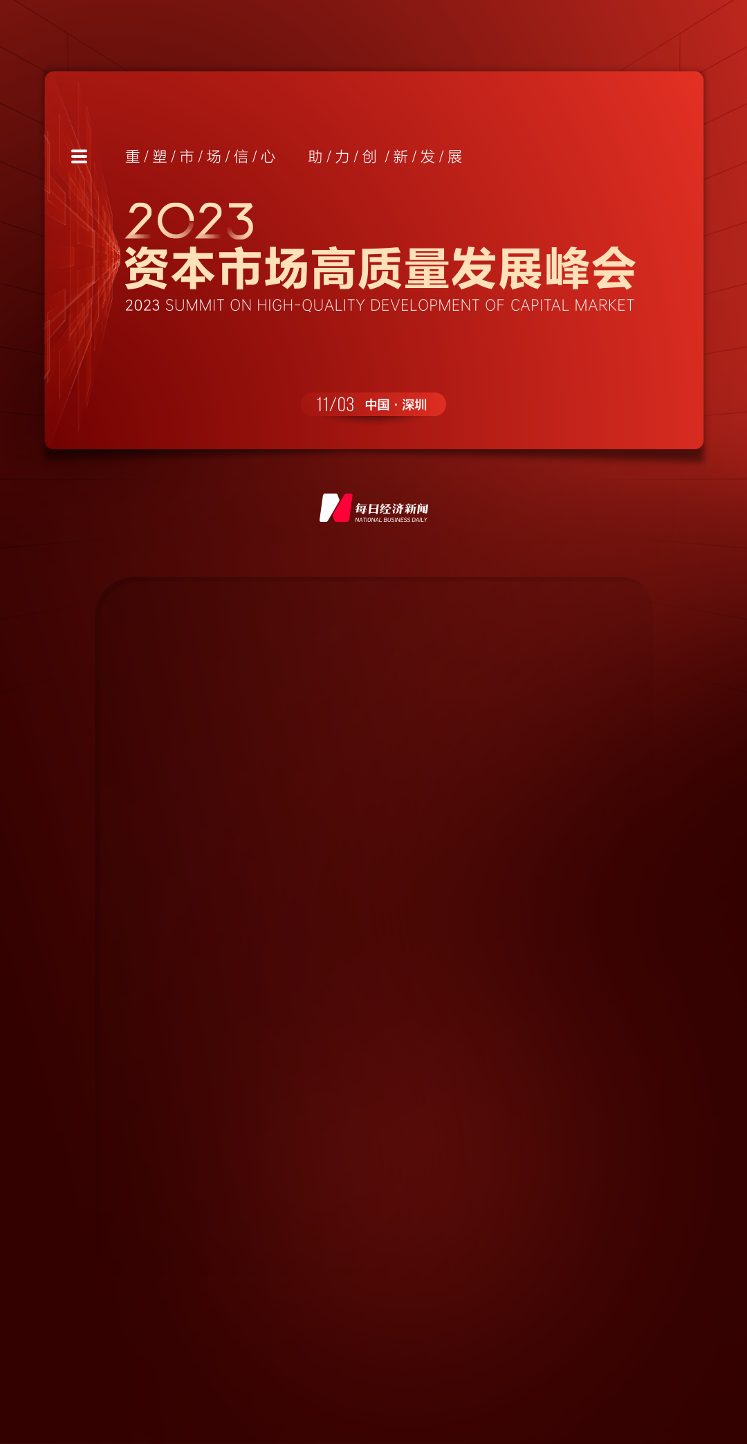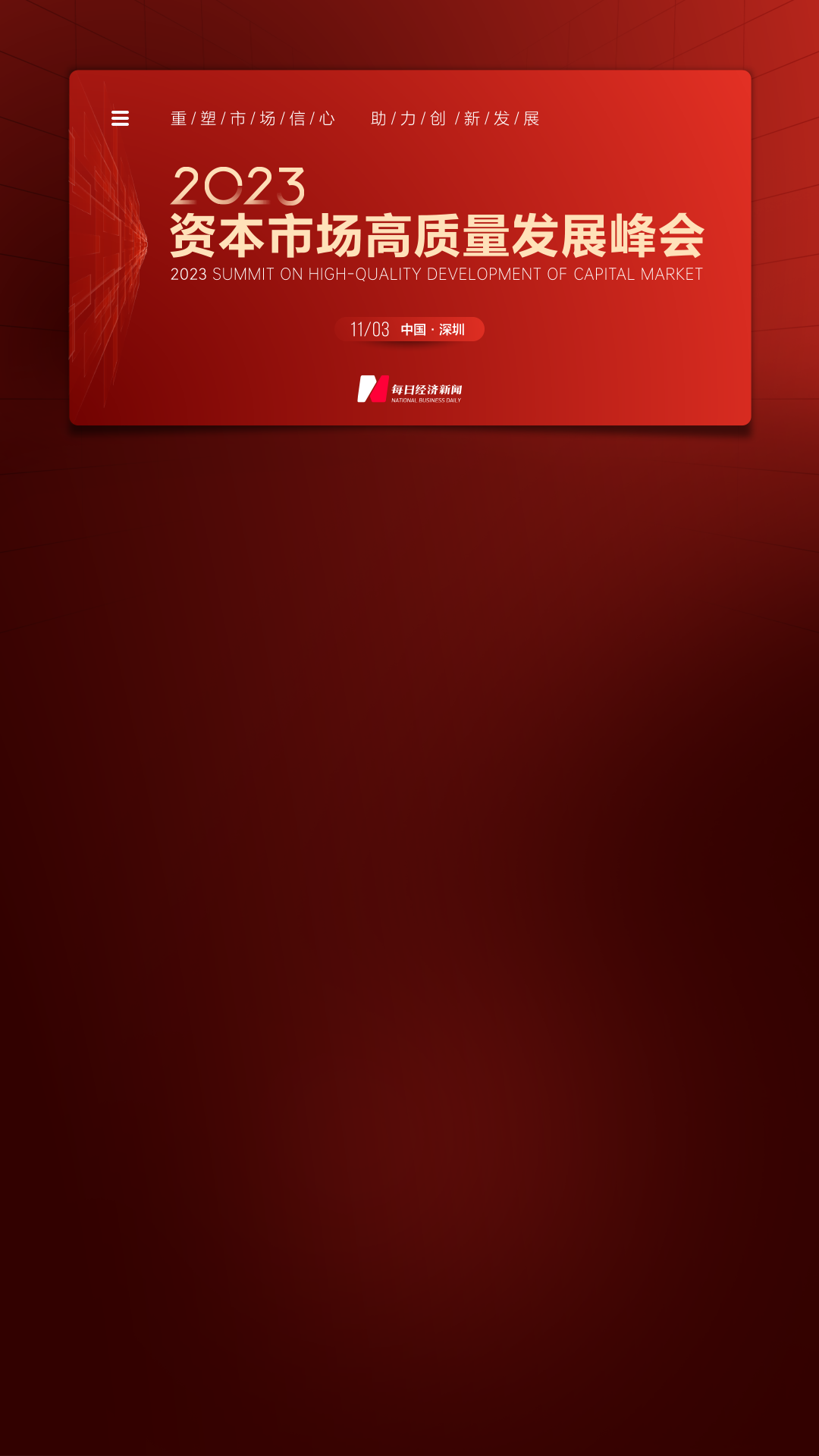 鑒于此,本屆資本市場高質(zhì)量發(fā)展峰會(huì)將圍繞"重塑市場信心 助力創(chuàng)新發(fā)展",希望聽到您對市場未來發(fā)展的真知灼見!