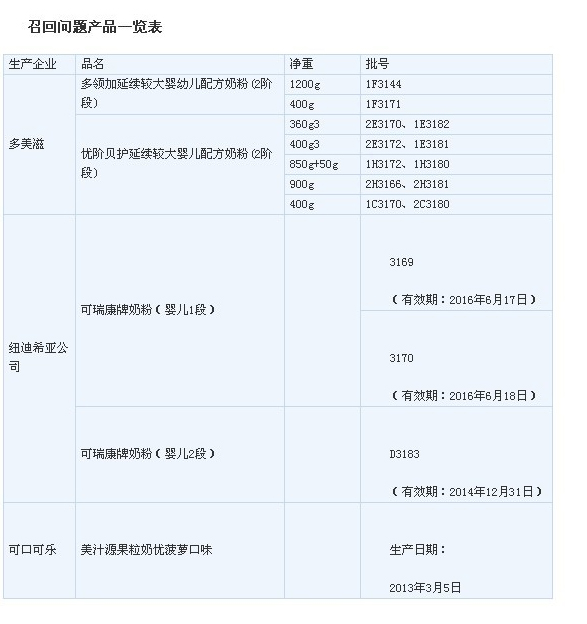 ·涉及產(chǎn)品:出廠批號分別為3169、3170的“可瑞康”1段(供0-6月嬰兒食用)和批號為D3183的“可瑞康”金裝版2段嬰兒配方奶粉(供6-12個月嬰兒食用)